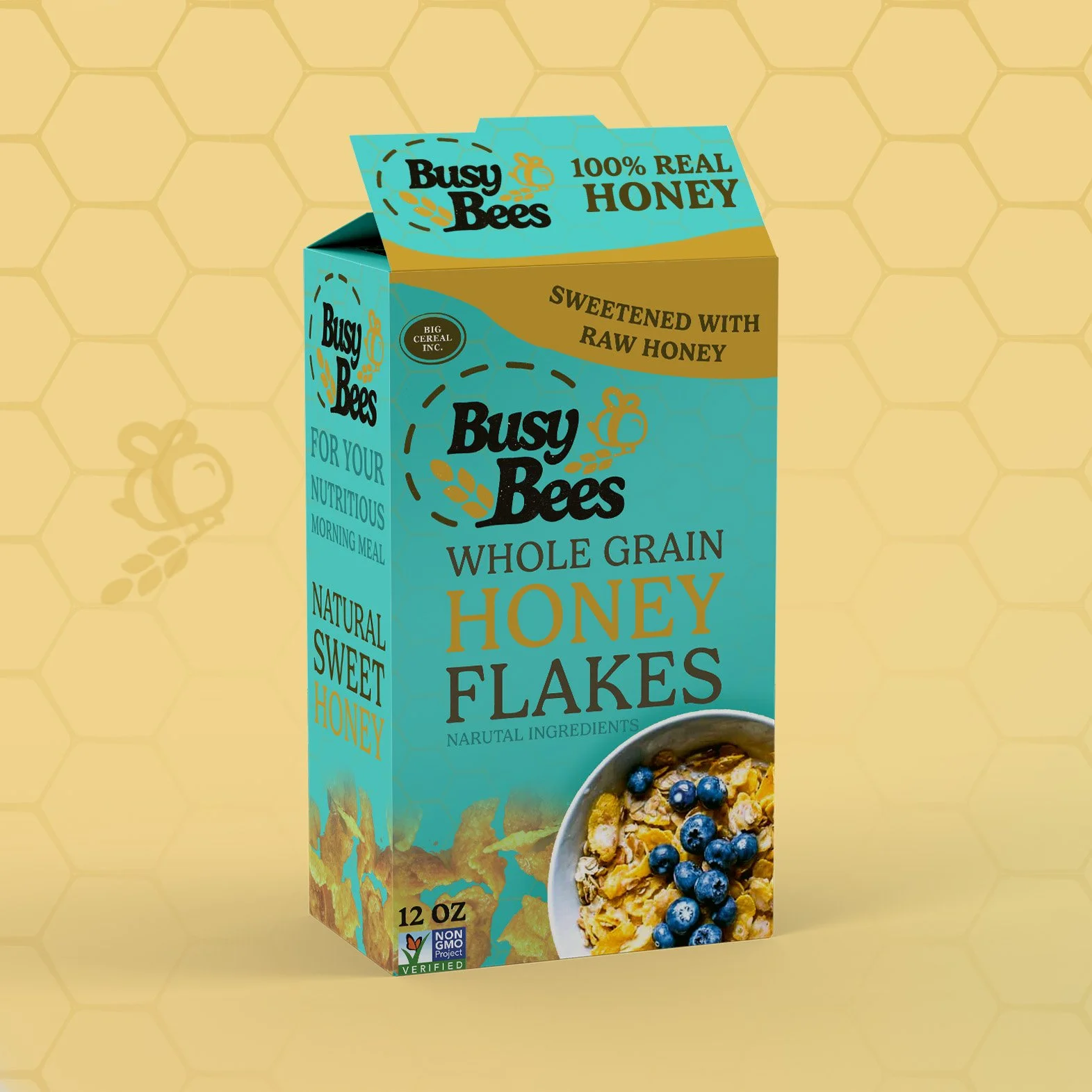 While it was challenging to create a cereal brand marketed at adults. I can say that busy bees does a great job at not being too fun to where the design is marketed towards a younger audience. The fun is mild enough to where the box design can elevate the maturity of the brand.